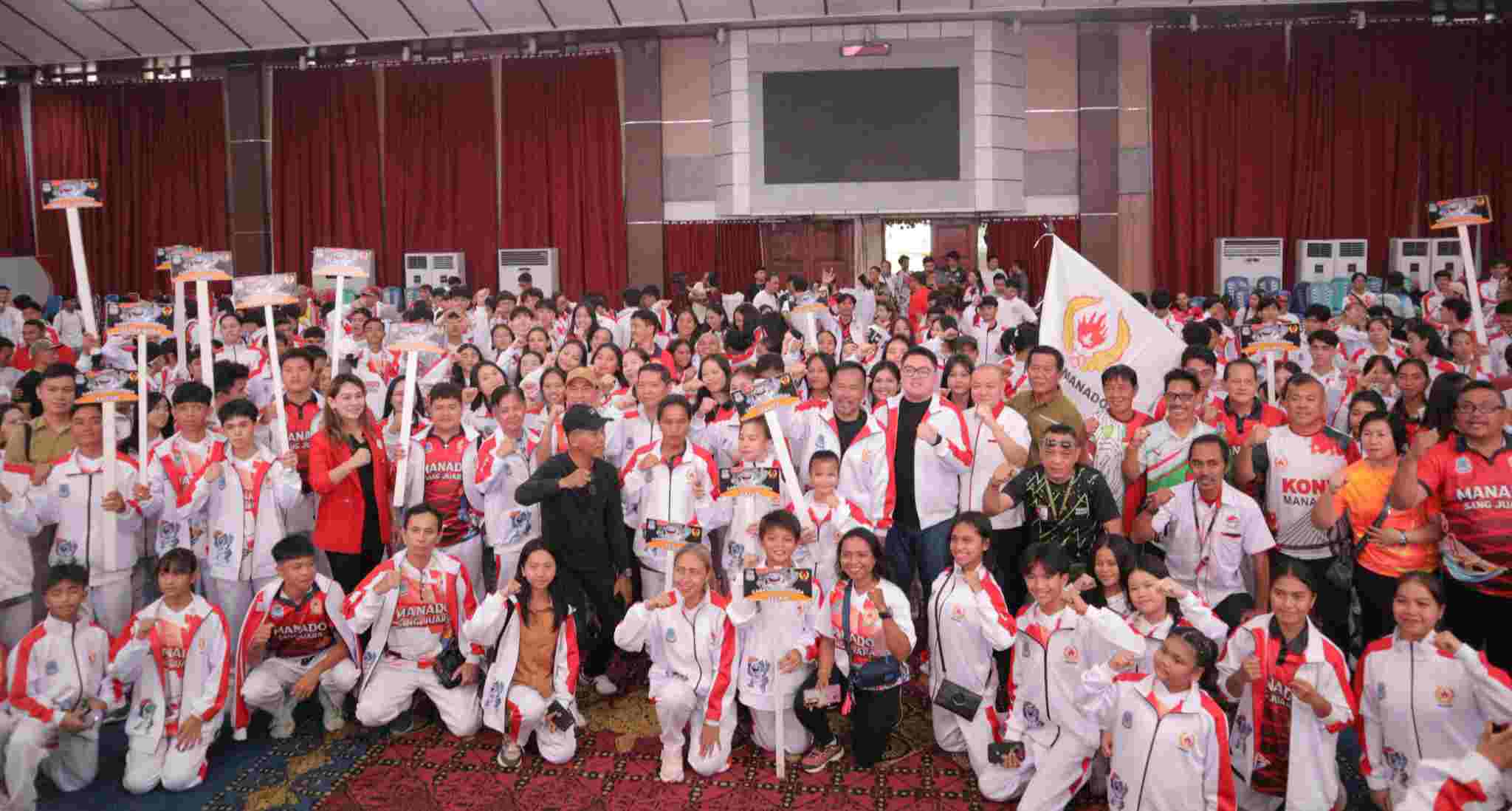 Kontingen Kota Manado secara resmi dilepas oleh Wakil Walikota Richard Sualang dalam acara Pelepasan Kontingen Manado yang digelar di Aula Kantor Walikota Manado, Jumat (14/11/2025).