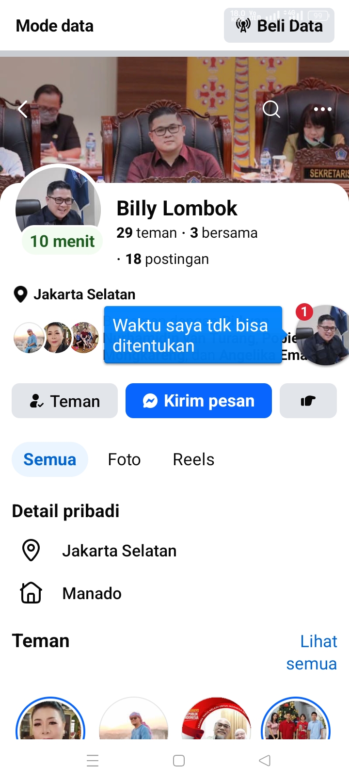 Terbaru, nama legislator DPRD Provinsi Sulawesi Utara (Sulut) Billy Lombok SH MAP dicatut dan digunakan orang lain di media sosial Facebook (FB).