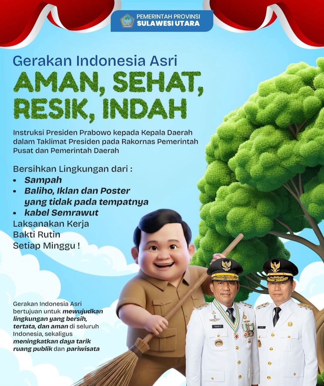Pemprov Sulut berharap Gerakan Indonesia ASRI bertujuan menciptakan ruang publik yang bersih, aman, dan nyaman sekaligus meningkatkan daya tarik daerah, khususnya di sektor pariwisata.