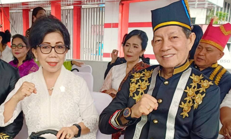 Menggunakan pakaian adat Minahasa, ia hadir bersama isteri Dr Julyeta Runtuwene yang juga Anggota DPRD Sulut dan anak Kristo Lumentut.