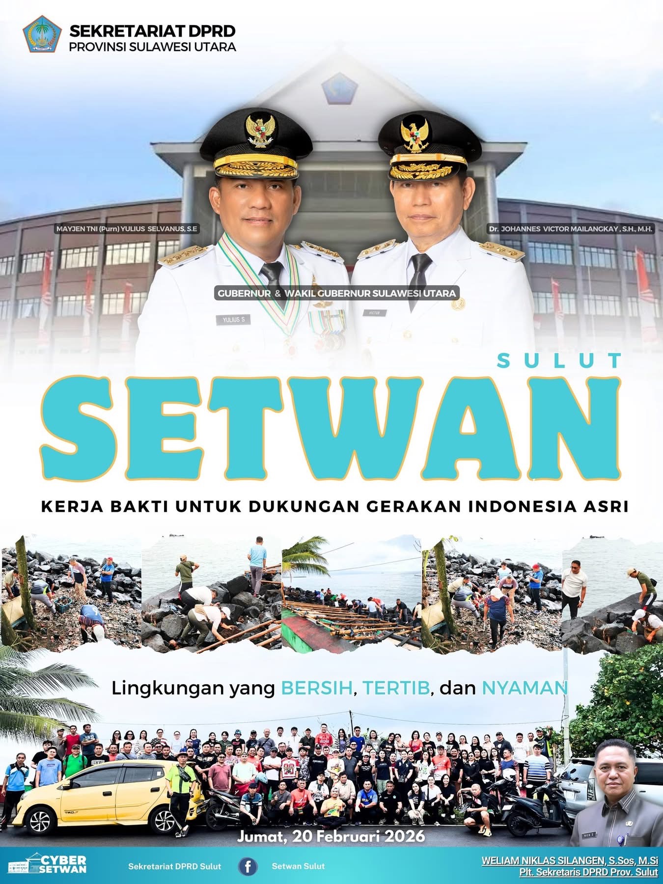 Manado,BERITASULUT.CO.ID- Sekretariat DPRD Provinsi Sulawesi Utara (Sulut) melaksanakan kegiatan kerja bakti dalam rangka mendukung Gerakan Indonesia Asri, Jumat (20/2/2026).